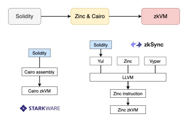 Type 4 系统通过获取以高级语言(例如 Solidity、Vyper 或两者都可以编译的中间语言)编写的智能合约源代码并将其编译为明确设计为 ZK-SNARK 友好的某种语言来工作.