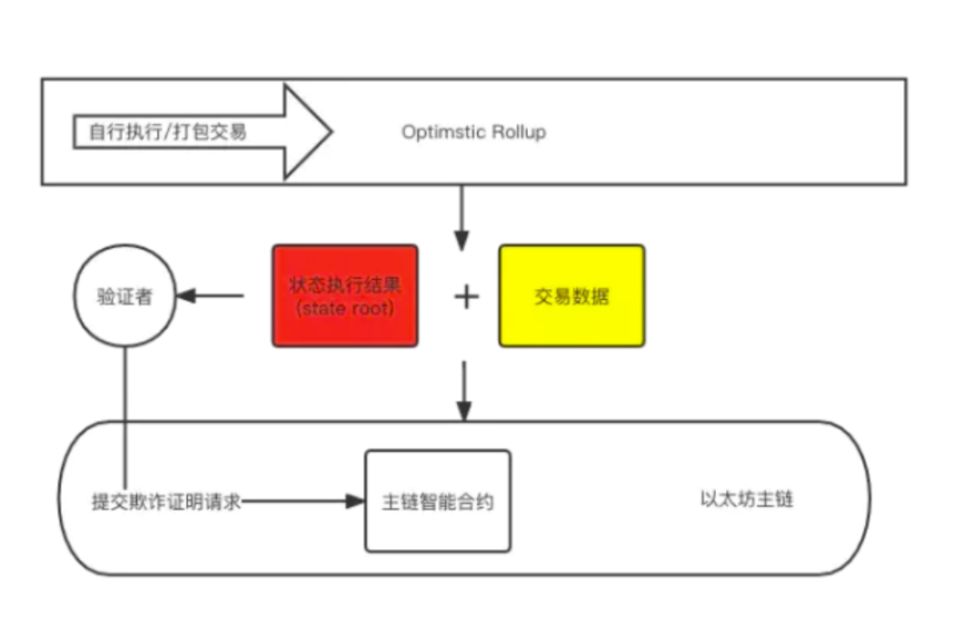 Optimistic Rollup 默认提交者提交的 batch 是正确的,如果任何人发现某个 batch 的后状态根不正确,他可以向区块链发布一个证明,证明该 batch 计算错误。合约会对证明进行验证,并且对该 batch 及其之后的 batches 进行回滚。这样为了防止回滚,资金需要在 Optimistic Rollup 锁定 7 天来确保验证结果是正确的。