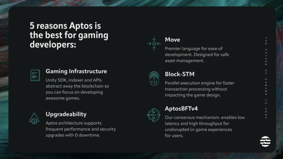 1)Aptos 是一种高性能且可扩展的区块链,可以在游戏中实现所有权、互操作性和透明度;2)全球有超过 32 亿个游戏玩家,新一代的 alpha 游戏玩家正在寻找新的数字原生体验,而 web3 正是游戏的下一个前沿;3)区块链可以为游戏当前面临的挑战提供解决方案,从验证到安全性、社区链接和约束;4)Aptos 专注于提升区块链性能、升级性和专注于游戏基础设施,为游戏开发者提供更好的开发体验;5)游戏开发商正在 Aptos 链上开发游戏,Aptos 社区开发者为游戏创造了新的、新颖的用例,而 NPIXEL 等行业领先的游戏合作伙伴则打破了游戏界第一个 Web3 游戏宇宙 METAPIXEL 的界限。如今,有 32 亿人(占世界人口的 40%)玩游戏,到 2026 年,游戏价值可能达到 3210 亿美元。千禧一代在互联网的环境中长大,Gen Alpha 是在区块链诞生之后的一代人,他们对《Roblox》和《堡垒之夜》等游戏非常入迷,到 2025 年,Gen Alpha 人数将超过 25 亿人,这是历史上人数最多的一代人,他们对于游戏的要求更高。虽然传统游戏提供身临其境的体验,但这些平台限制了玩家能真正拥有游戏内资产和与其他游戏互动的能力,对于长时间在游戏中投入时间的用户而言,这可能会让人沮丧,因为他们只能在特定的游戏中使用自己的资产,而无法转移到其他的游戏,当他们离开这个游戏或者游戏停服后,这些辛苦赚来的资产只能清零。 相比之下,Web3 游戏为玩家提供了一个能更加享受互联互动游戏体验的机会。所有权是 Web3 游戏的核心原则,它使玩家能够拥有自己的游戏内资产并更好地控制他们的游戏体验,通过拥有保值资产,玩家可以与游戏建立更有意义的联系,从而增加对游戏社区的投资、参与度和忠诚度。例如,玩家可能会购买独特的游戏内道具,他们可以向朋友炫耀并用来增强他们的游戏体验。但是,如果没有更广泛的游戏生态系统的支持,拥有游戏资产的价值就会受到限制。在传统游戏中,不同游戏之间的互动通常有限,即使是在同一个工作室中开发的游戏也是如此,这意味着玩家不能在其他游戏中使用他们的资产。这就是互操作性的用武之地——它使不同的系统和应用程序能够相互通信和交换数据。例如,互操作性可以让玩家在同一生态系统内的另一款游戏中使用他们在一款游戏中的游戏内的资产。 总之,所有权和互操作性使资产可移植性成为可能,这就是 Web3 游戏与 Web2 游戏的根本区别。资产可移植性让玩家不仅可以在游戏之间转移资产,还可以在社交媒体等其他平台之间转移资产。例如,玩家可能会在 Instagram 或 Twitter 等社交媒体平台上展示他们在游戏中独特的道具,将游戏成就和游戏之外的资产分开可以让玩家发现与其他玩家互动的新机会,并建立自己的在线形象。允许玩家拥有和转让他们的游戏体验,可以促进玩家投资,促进社区和经济,并为开发商提供提高粘性和吸引资金的新方法。Aptos 是一个无需许可、高性能和可扩展的 layer1 区块链,有来自 web2 和 web3 公司的合作伙伴,包括 Google Cloud、Livepeer、Moonpay、Chingari 和 KYD Labs。自去年 10 月启动主网以来,Aptos 合作伙伴范围迅速扩大,其中包括和世界顶级游戏公司之一的 NPIXEL 合作,在 Aptos 上独家打造 Web3 最受期待的游戏 GRAN SAGA:Unlimited。目前,GRAN SAGA:Unlimited,目前已经进入社区测试(测试时间为 3 月 24 日 -3 月 27 日)测试链接:其次,Aptos 在游戏方面会积极参与社区,通过配对社区和技术来创造一个不断循环发展的游戏社区,为全球游戏玩家创新用户体验。Web3 建立在社区和文化之上,没有比 NPIXEL 加入 Aptos 之旅更好的社区一致性的例子了。NPIXEL 在游戏商城有超过 420 万次的下载,选择 Aptos 开发了 METAPIXEL 来共同推动 web3 游戏的发展,吸引原游戏玩家加入 web3,这有可能一夜之间改变整个 web3 游戏的格局。 最后,Aptos 不断改进网络体验,以便于更加符合游戏开发的需要,开发者能够更加专注于游戏的建设。 1)Aptos 作为 Unity(译者注:Unity 是实时 3D 互动内容创作和运营平台)的 13 个经过验证的去中心化解决方案之一,可以让游戏开发商专注于开发出色的游戏,而不是解决区块链会出现的问题;2) Aptos 架构能够支持零停机的频繁升级,这意味着 Aptos 可以无缝地提升性能、加强安全性;3)Aptos 的编程语言 Move 因其易于开发而广受认可,并专为安全资产管理而设计; 4)Aptos 的并行执行引擎 Block-STM 可以在不影响游戏开发者体验的情况下加快交易处理速度。5)Aptos 的共识机制 AptosBFTv4 可实现低延迟和高吞吐量,为用户提供可扩展、不间断的游戏体验。Aptos 除了提供可扩展、高性能和可升级的基础设施,增强跨链的互操作性,提供引人入胜的游戏体验之外,还将积极致力于开发资源和国际社区,以吸引全球范围内的游戏玩家和游戏工作室。如果你也将致力于 Web3 游戏开发,欢迎与 Aptos 团队联系:https://aptos.typeform.com/aptos-business?typeform-source=aptosfoundation.org关注 Aptos Global