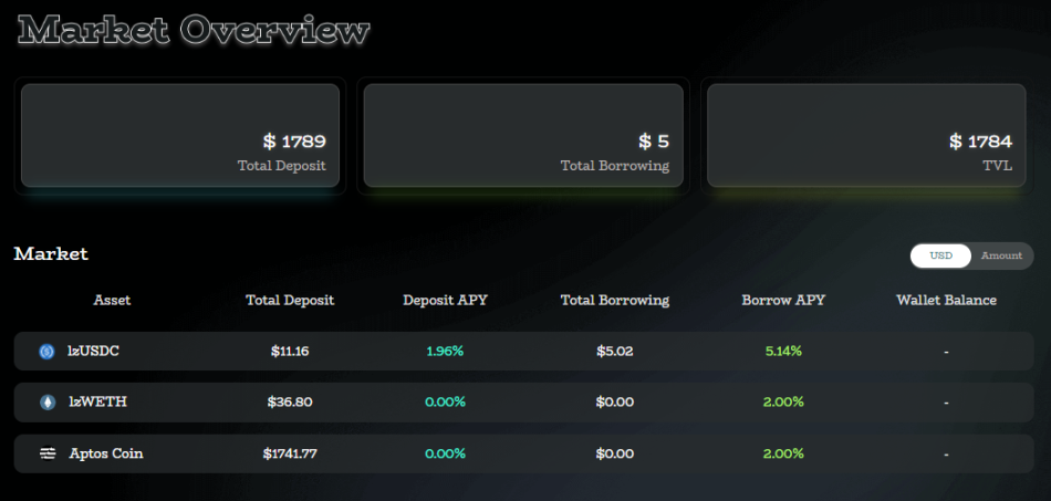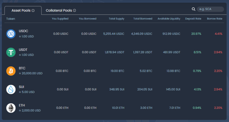 建立在 Aptos 和 Sui 上的借贷市场,但还未在 Sui 测试网上线。