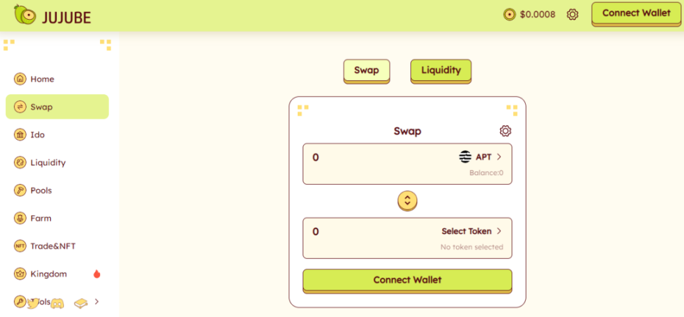 虽然 NFT-Fi、代币交换、launchpad 功能已发布,但没有可供交易的流动性。