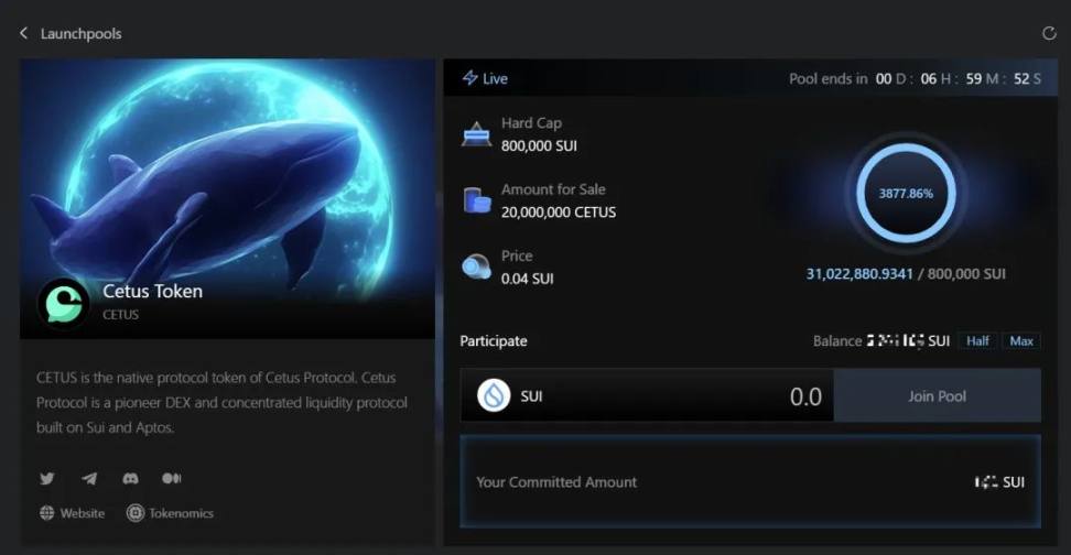 Cetus 在 5 月 8 日~10 日期间在官网以约 5000 万美元的估值进行 IDO,是最受炒作的项目。在撰写本文时,IDO 距离结束还有 7 小时,已经超额认购了 3,900%。