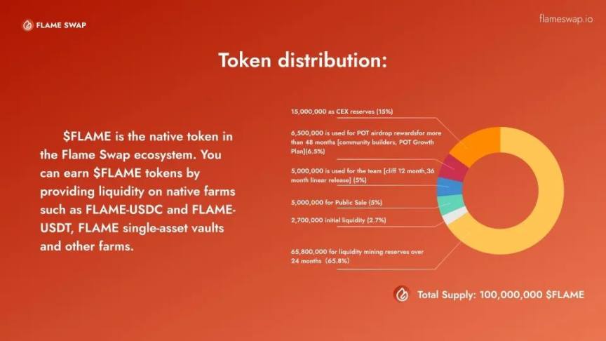 Flame Finance 是建立在 Sui 上的一个 DEX。代币经济学中值得注意三点: