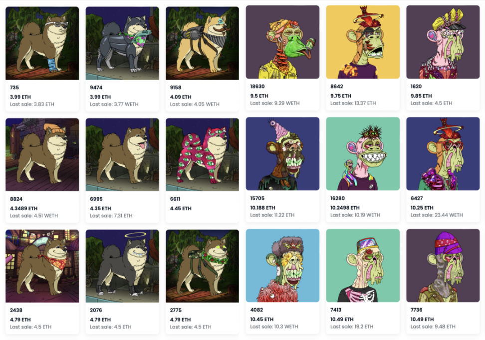 Yuga Labs 于 2021 年首个推出的由 1 万只无聊猿组成的 NFT 系列 —— Bored Ape Yacht Club 在 NFT 行业中拥有最高的地板价(NFT 系列中市场定价最低的那个价格),价格高达为 9.6 万美元,紧随其后的是 CryptoPunks,价格为 9.2 万美元。