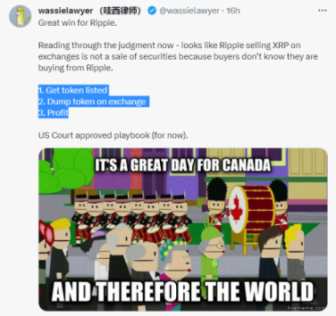 事实上,Ripple 也通过在市场上的公开宣传等手段,告知投资者投资其 XRP 代币未来可能获利,或者将 XRP 的价值与 Ripple 自身的努力挂钩。