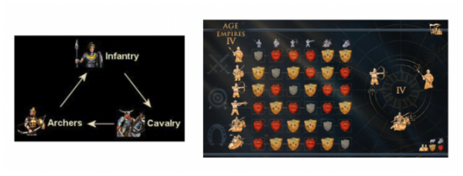 以帝国时代(Age of Empires)电子游戏世界为例,计数器系统描述了军事单位类型之间的相对效能。计数器系统构成帝国时代数字世界数字物理学的一个子集。