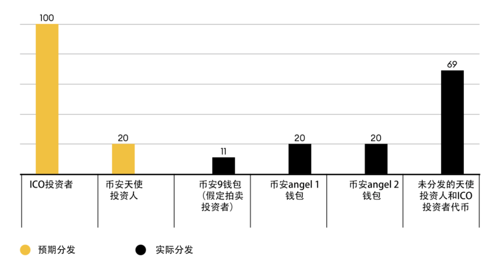 在 ICO 结束后的第一个月内,我们对其天使投资人和散户投资者的综合考察只统计到了不到 2000 个地址,约占赵长鹏声称在交易所注册的 20,000 名用户的 10%。