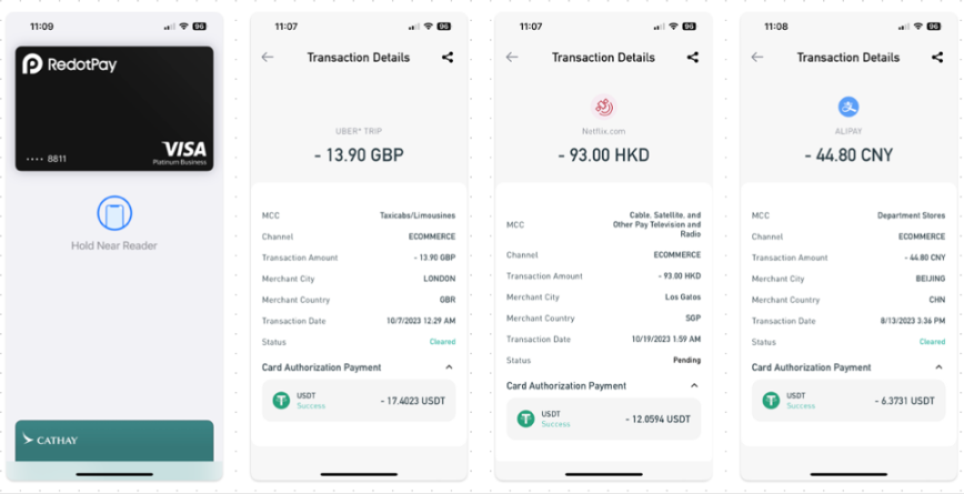 实体卡主要补足了用户 ATM 取现的需求 - 持有 RedotPay 实体卡的用户可以在全球任意一部 ATM 机取现当地货币。同时,实体卡提高了其产品对电子支付尚不发达地区的友好程度,用户可以使用实体卡于线下直接完成刷卡或拍卡支付。