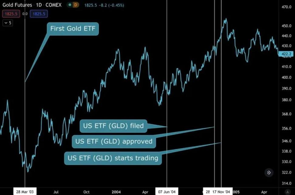 我参考了美国历史上黄金 ETF 通过的历程判断比特币现货 ETF 如果通过的话会发生什么得到了以下几个结论(仅供参考)