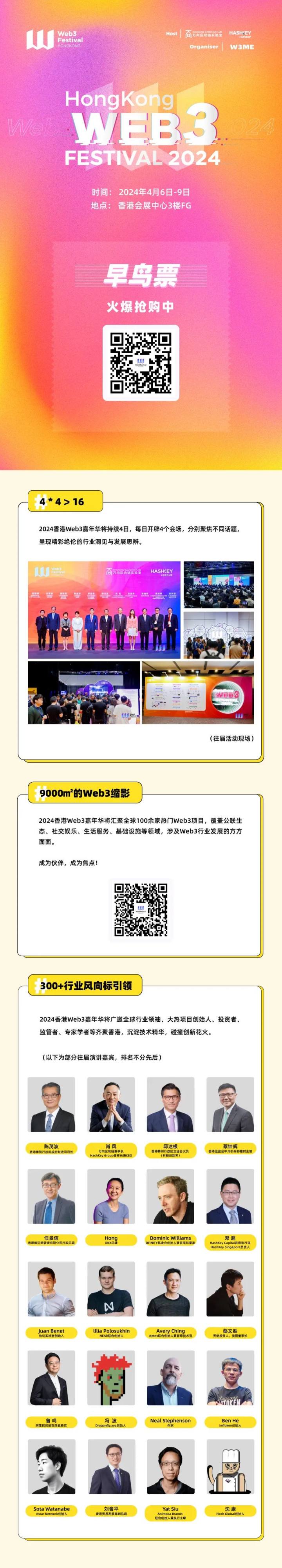 恭喜晨、Max.S、BrianLauQuedic成为元老级老友,并获得 2024 香港 Web3 嘉年华免费门票 1 张!小万将在 3 个工作日内通过邮件与各位联系。没有获奖的小伙伴也不要气馁,欢迎持续关注万向区块链微信公众号,小万将不定期发布 2024 香港 Web3 嘉年华最新资讯和福利活动。