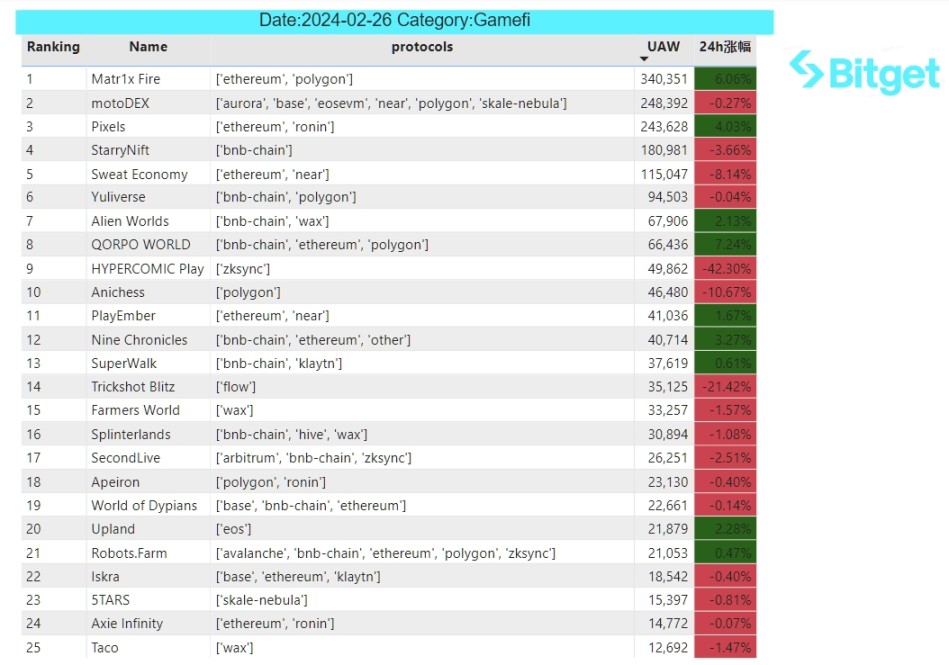 Matr1x Fire(Dapp):FPS 链游《MATR1X FIRE》全球体验服测试于 1 月 29 日正式开测,仅仅在前三天就吸引了超过 7 万名全球 FPS 玩家。目前每日活跃用户数(DAU)接近 3 万人,平均在线时长 57 分钟。