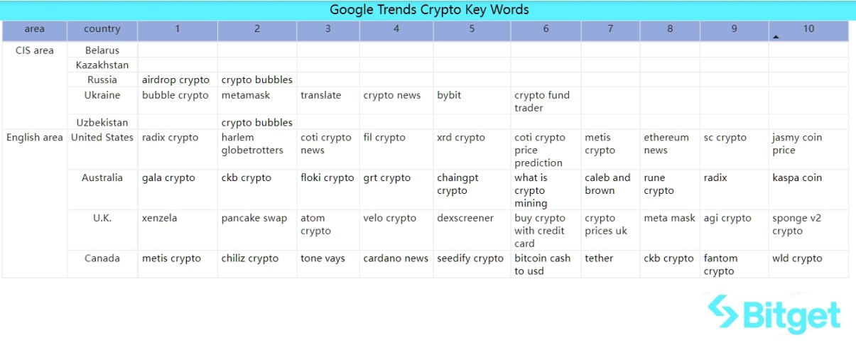 「澳大利亚」热搜:gala、ckb、floki、grt、chaingpt、rune、radix、kaspa;