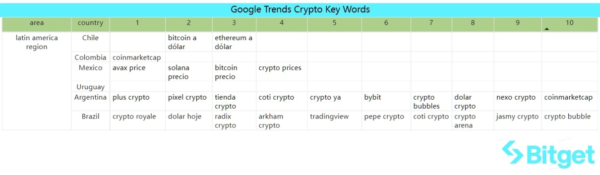 「墨西哥」 热搜:avax、solana、bitcoin;