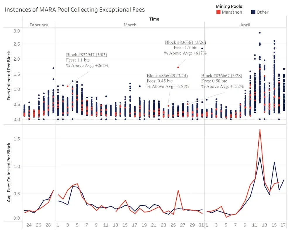 另一个非典型需求可能是交易加速器。Marathon 在 2 月下旬推出了一款名为 Slipstream 的产品,为用户开辟了一条绕过比特币内存池(交易的打包等待区)的途径,即向 MARA 矿池直接通信和支付交易。虽然与其他矿池相比,该产品在赚取费用方面没有提供太大的优势,但仍有几个成功的例子。