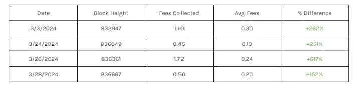 这些高价出售事件为那些正在链上寻找价值不菲的聪的人提供着动力。在二级市场上以远高于普通市场的价格售卖聪的目的正在改变某些用户支付交易费用的倾向。可以肯定地说,为了收集一个具有特殊意义的聪并在市场上出售获利高达数十万美元,会导致竞争对手给出比普通交易高得多的手续费用。