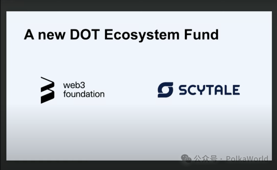 基金会可以在这里发挥作用,但还有许多其他人在做这件事。我在这里要独家宣布一个合作,我们将与 Scytale 合作,推出一个新的 Polkadot 生态系统基金,专注于 DOT 生态系统,包含风险投资和流动性策略。