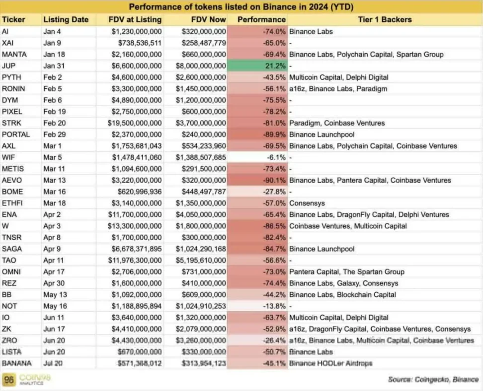 - 因为已经明白了上币开盘 Playbook,明确目标开盘卖币,所以都会高估值开盘,然后卖出最少的币,换来最多的钱,然后市场买盘枯竭,但还是要卖币,不卖币是不可能的