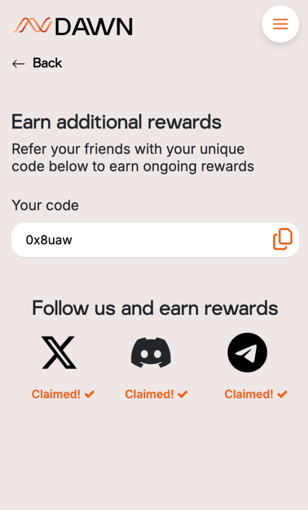 目前项目还处于早期阶段,RAS 硬件暂未普及。可以通过下载(https://www.dawninternet.com/blog-posts/dawn-validator-extension-rewards-system)浏览器插件充当验证节点获得早期积分奖励。