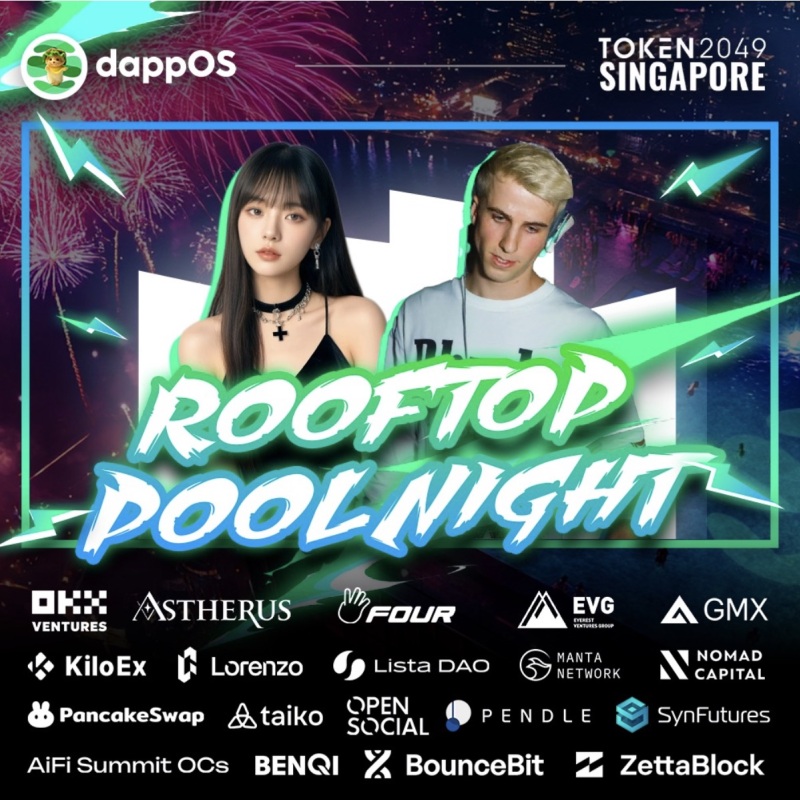 TOKEN2049 汇集了全球 Web3 行业的创业者、投资者、开发人员、业内人士和全球媒体,并创造了自由的交流机会。值此 Web3 盛会期间,dappOS 作为首个「以意图为中心」的 Web3 意图执行网络将于 将于 9 月 17 日、19 日在新加坡举办「 Rooftop Pool Night」和「MEME Yacht Party」活动。