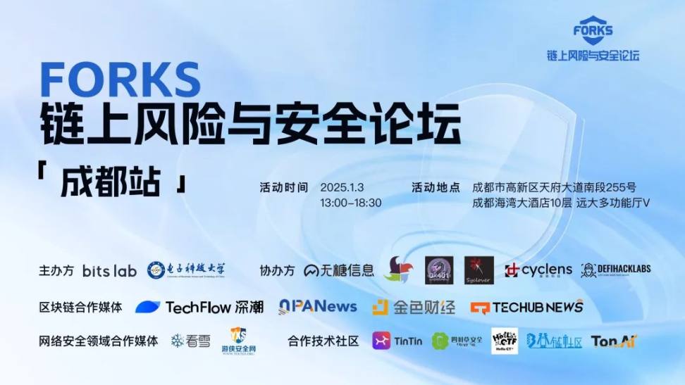 FORKS 链上风险与安全论坛「成都站」活动倒计时仅剩 3 天!洞悉区块链与传统网络安全领域的前沿技术,结识业界大咖并拓展人脉,这将是你不容错过的一次线下盛会!