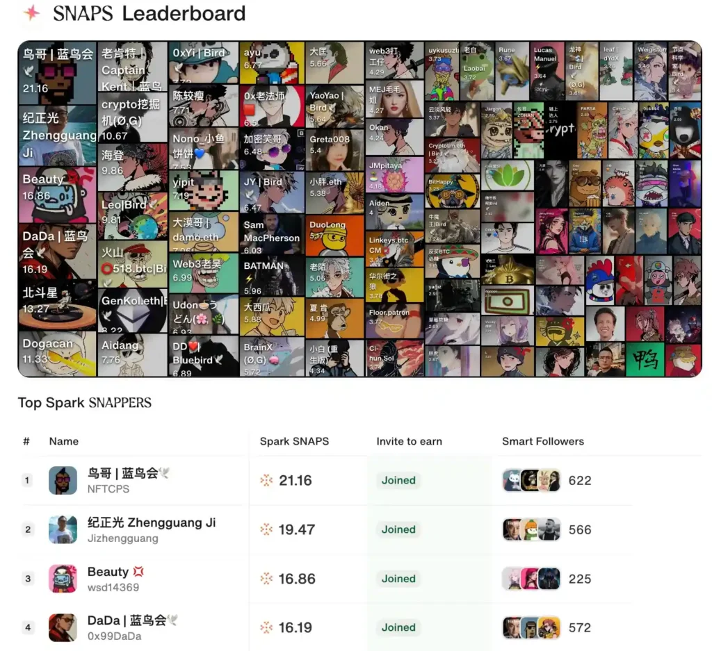 圖 4、Spark 的 Snap 活動排行榜,來源:Cookie.fun