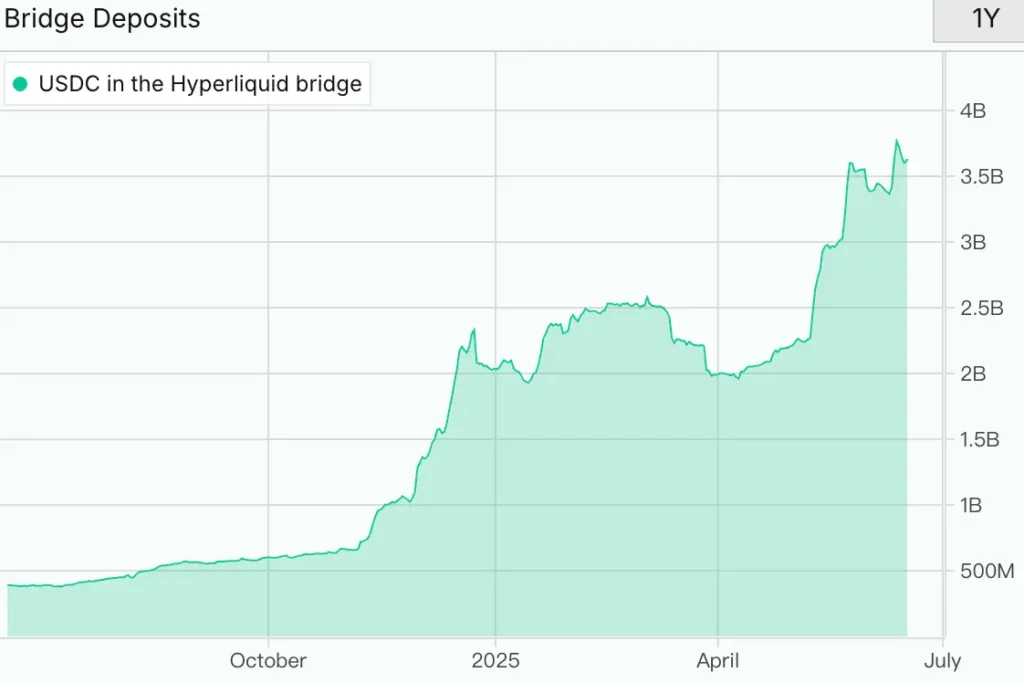 圖 1、 Hyperliquid 官方橋的 USDC 存量,來源:Purrsec
