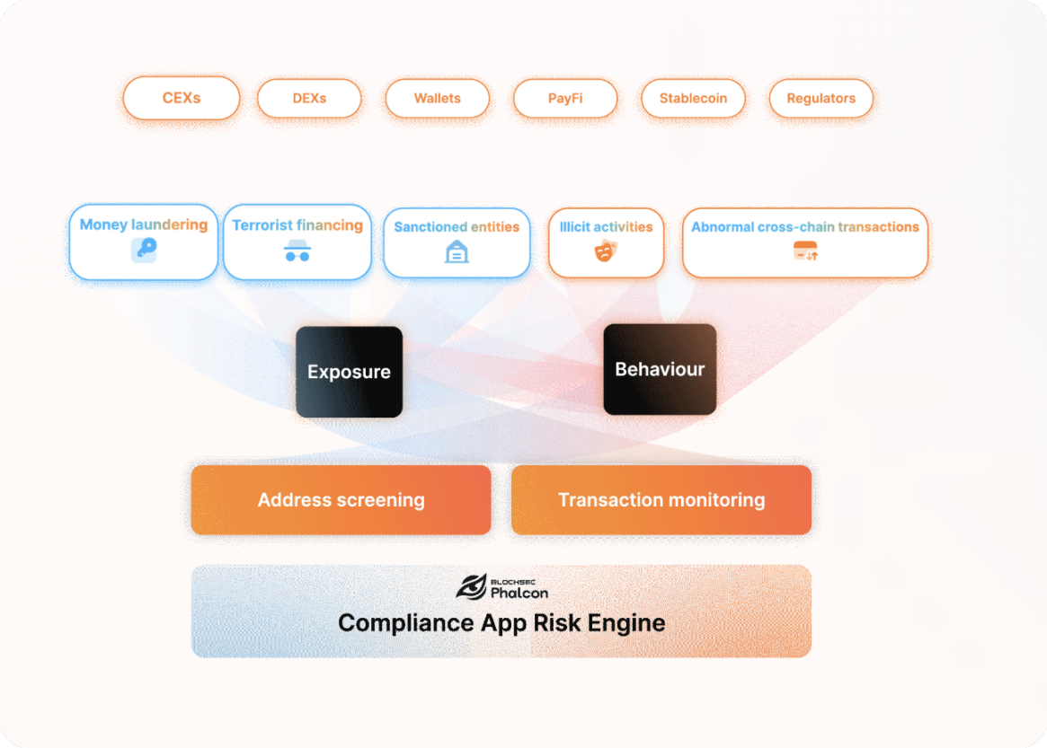 图注: BlockSec Phalcon Compliance App 示意图。通过对于地址和交易的筛查,解决数字货币进行支付等场景的合规问题