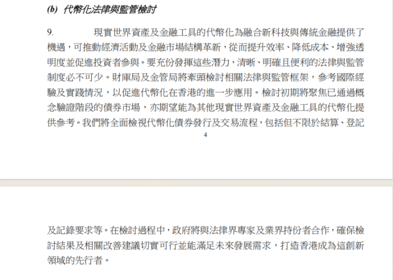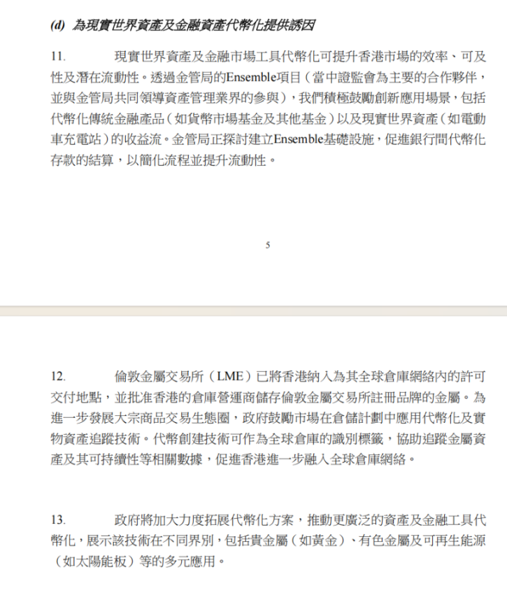 上图节选自《政策宣言 2.0》中「为现实世界资产及金融资产代币化提供诱因」