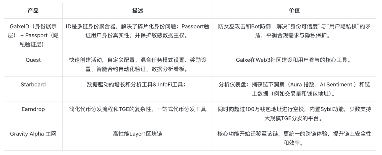 Galxe 是最大的 Web3 任务平台和凭证数据网络,拥有 3300 万独立用户,通过链上凭证重构 Web3 增长引擎。其核心产品逻辑是通过 Galxe ID 和 Passport 解决用户的身份验证问题,实现防女巫攻击和 Bot 防御,产品端主要有 Quest、Starboard 及 Earndrop 来实现产品的增长引擎。