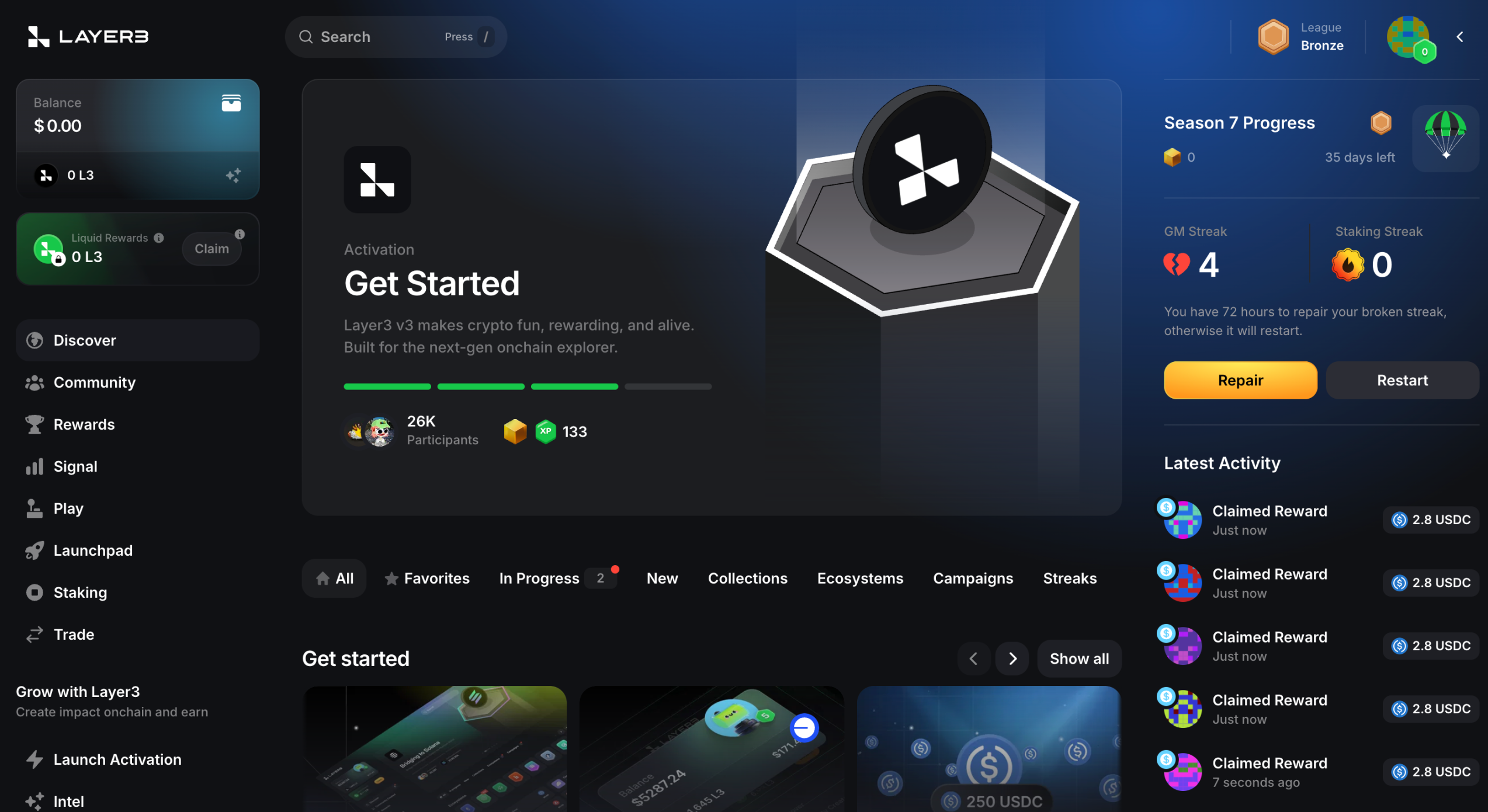 Layer3 现在拥有 25 万月活用户。如今,Layer3 已经推动了 31 条链和 500 多个协议的增长,涉及游戏、人工智能、DeFi 和 NFT 等领域。