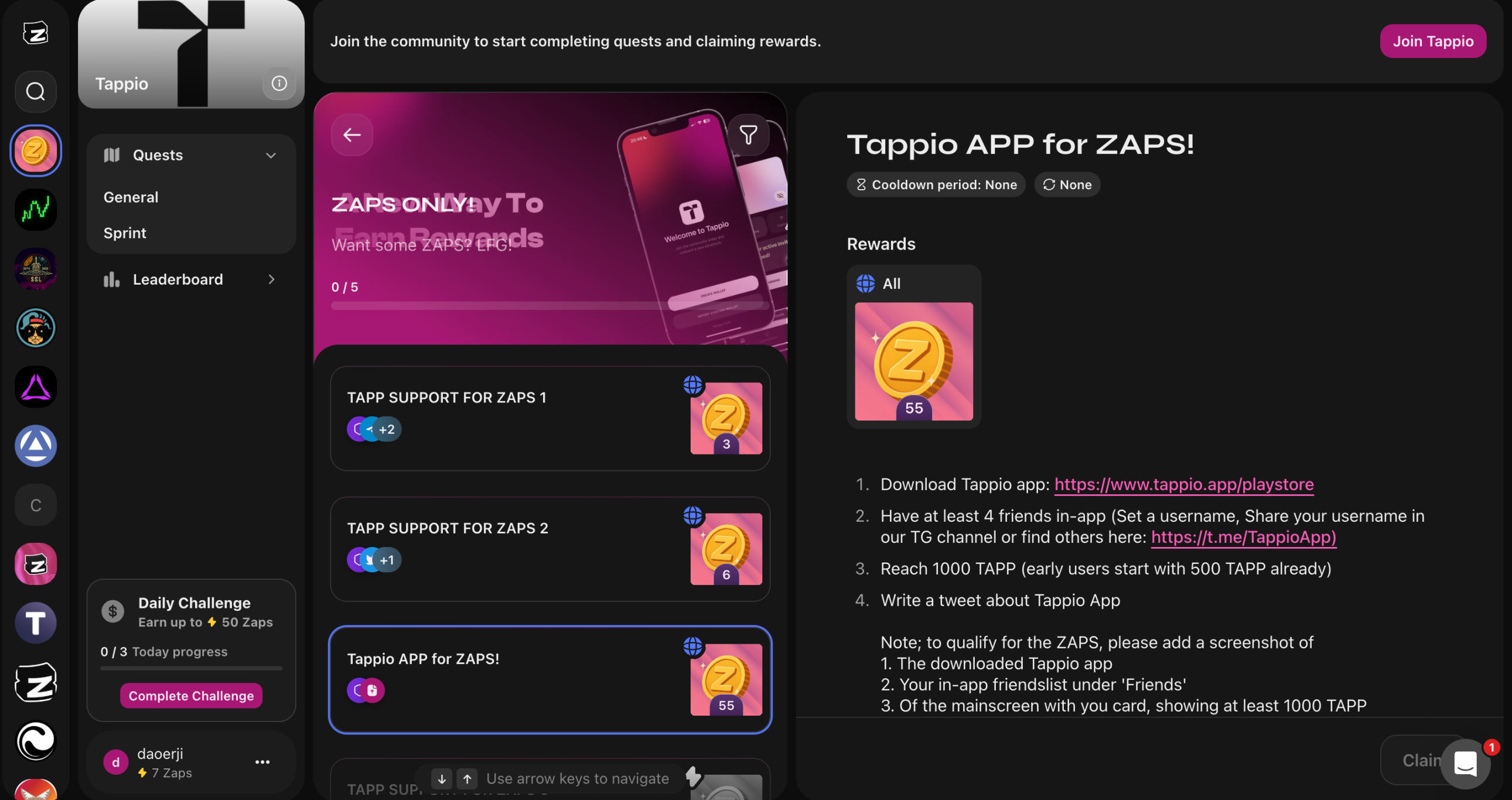 zaps 是目前平台的主要奖励,项目方需花钱购买来进行激励发放。Zealy 的流量优势和简单交互风格,低门槛上手路径,路径上紧密和 Discord 社区联系,更加强调社区的参与度。