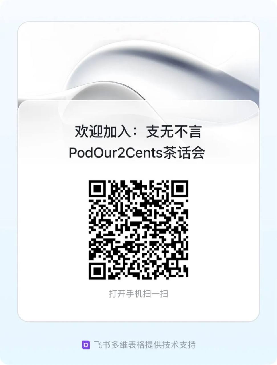 《支无不言》听众群正式开通了!扫描下方二维码填写相关资料,我们将会在初步审核后拉你入群。也可以扫码添加主播的联系方式。