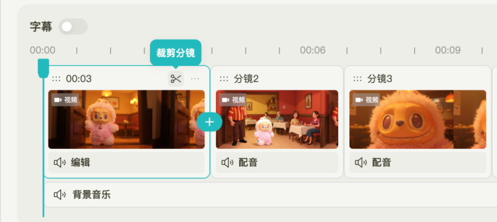 在每个分镜头的右上角,Seko 还支持快速的裁剪功能: