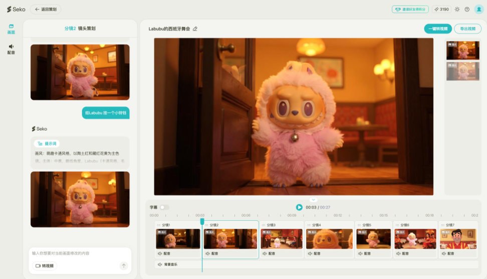 这一整套流程背后最重要的转变,其实不是“你能不能做出一条视频”,而是“你能不能表达出你想要什么样的视频”。Seko 把创作的难点从工具操作变成了表达想法,只要你描述得够清楚,它就能自动替你做出来。
