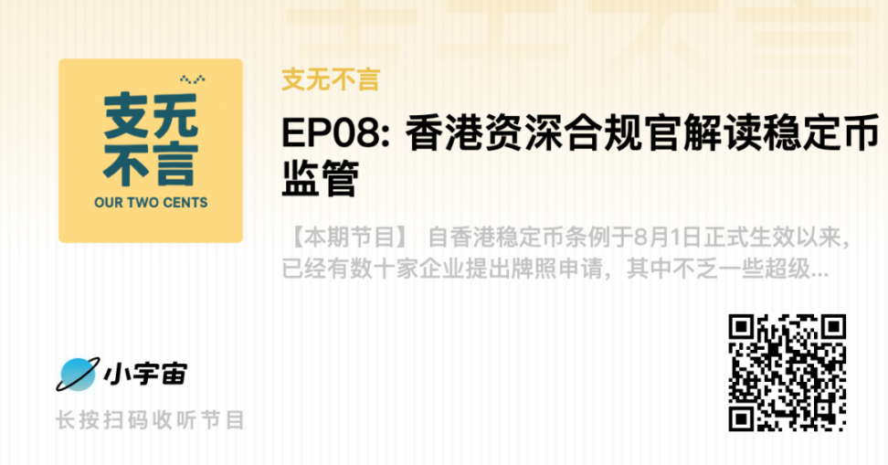 本期节目我们邀请了企业级 Web3 交易平台 KUN Global 的首席合规官、在香港监管部门和金融机构拥有逾十年从业经验的 Jacky,对稳定币条例和香港虚拟资产监管中的细节进行了解读,也分享了他对国际监管趋势的看法。