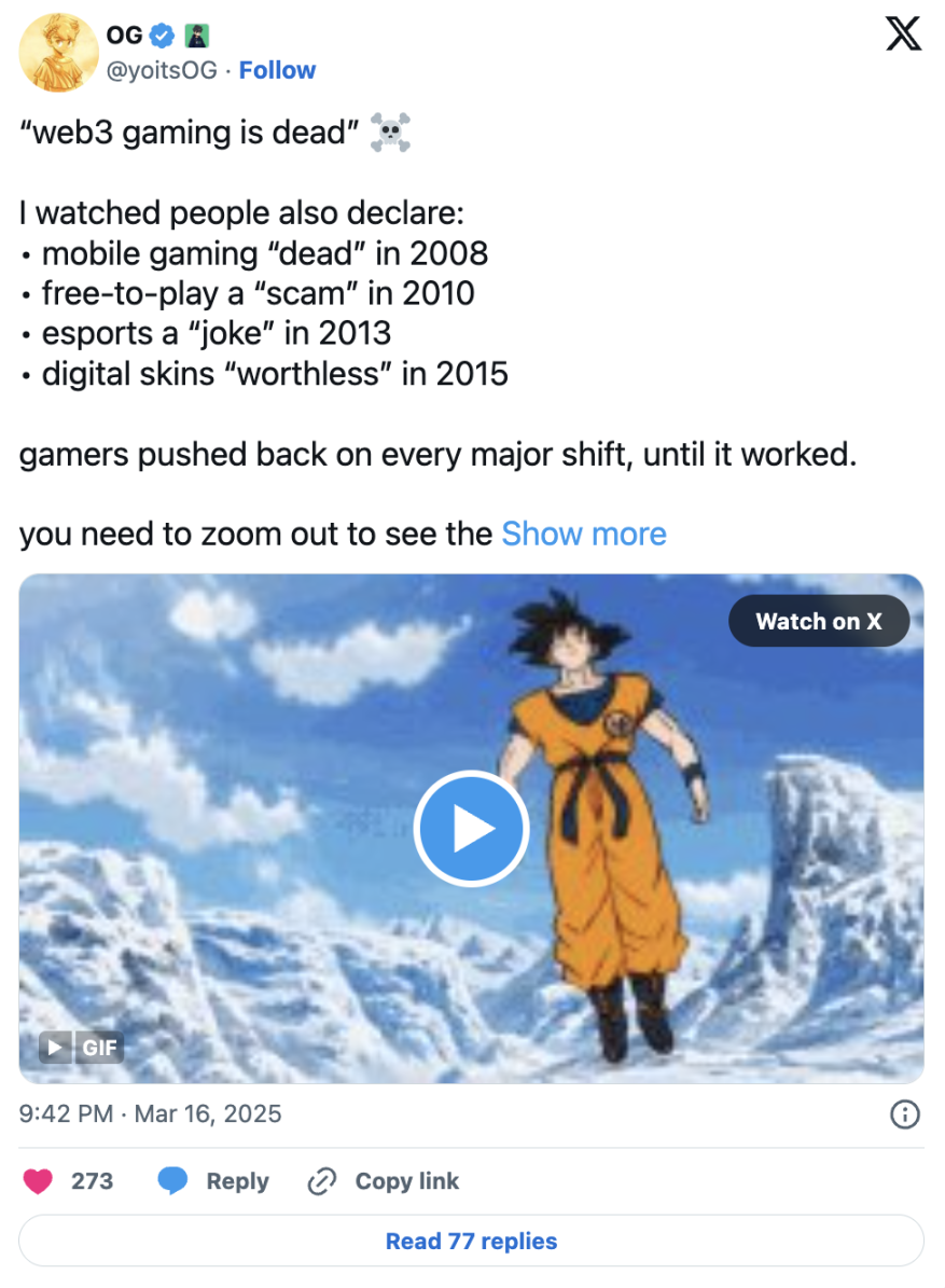 投资会回来吗?也许吧,这更多取决于宏观趋势 - 金融、经济以及更广泛的游戏市场,但从技术和采用的角度来看,我很乐观。