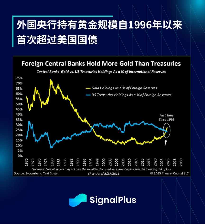 美联储在杰克逊霍尔会议后全面转向鸽派,贵金属大幅上涨,黄金逼近 4000 美元,白银自 2011 年以来首次突破 40 美元 / 盎司。此外,由于持续的地缘政治压力和粘性通胀,外国央行持有的黄金规模自 1996 年以来首次超过美国国债,且这一趋势预计将持续。