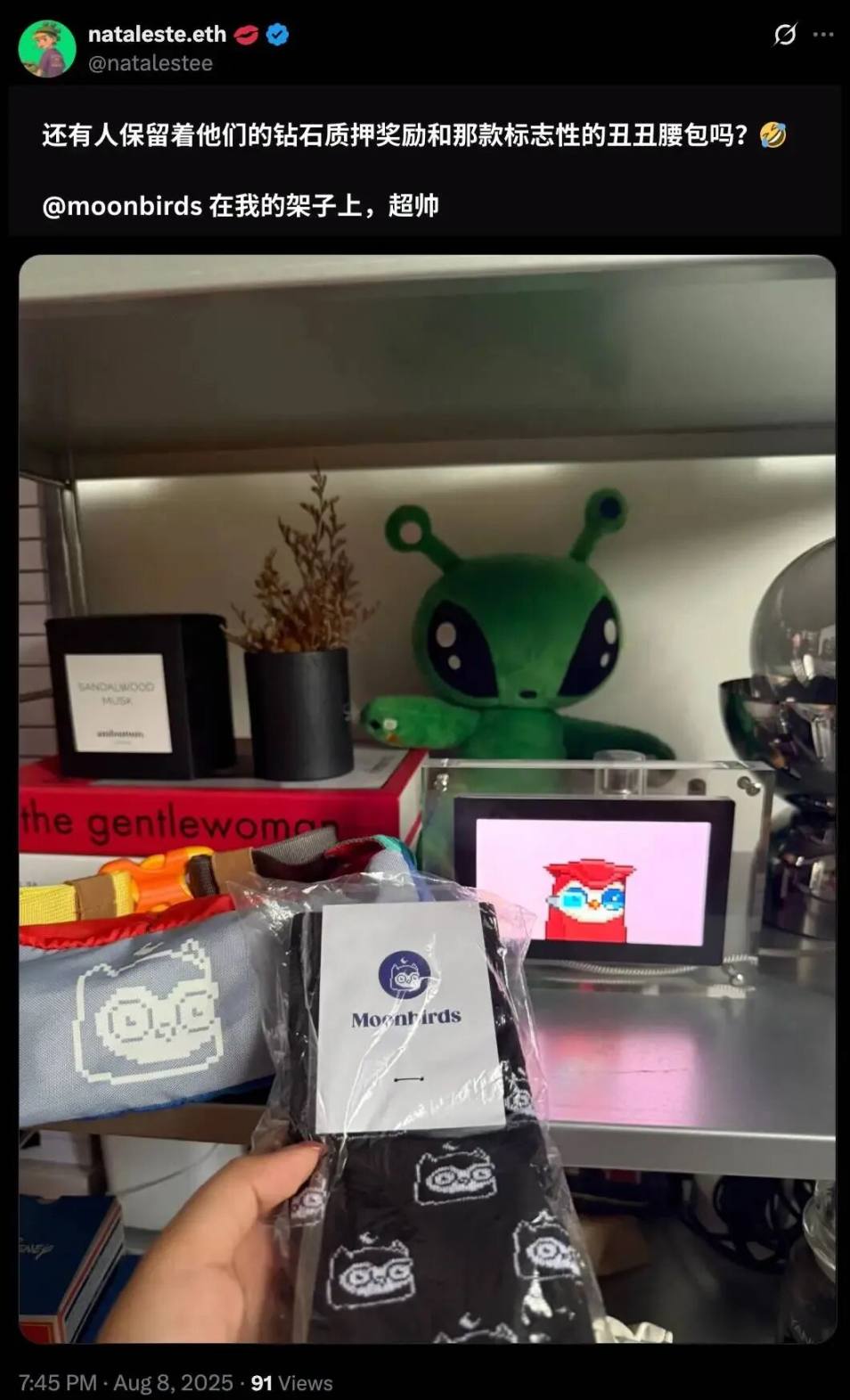 这种熟悉的剧情,让社区的心态发生了根本性转变:从“什么时候卖掉”变成了“为什么要留住”,Moonbirds 不再只是投机者的临时筹码,而逐渐被视为一个正在建设中的品牌资产。