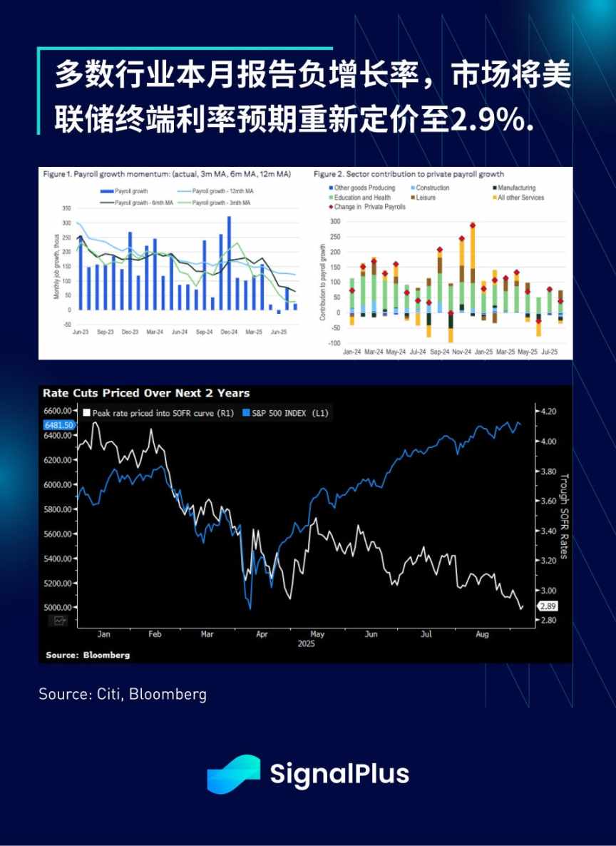 报告核心资料同样疲软,八成行业八月份就业呈现负增长,这强化了本月降息的预期,使美联储终端利率预期降至 2.9%,成为当前周期的最低点。较今夏初 3.4% 的利率水准大幅下调 50 个基点。
