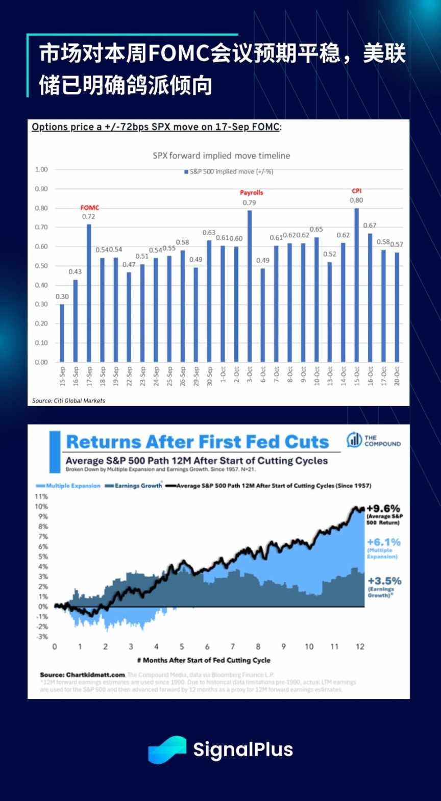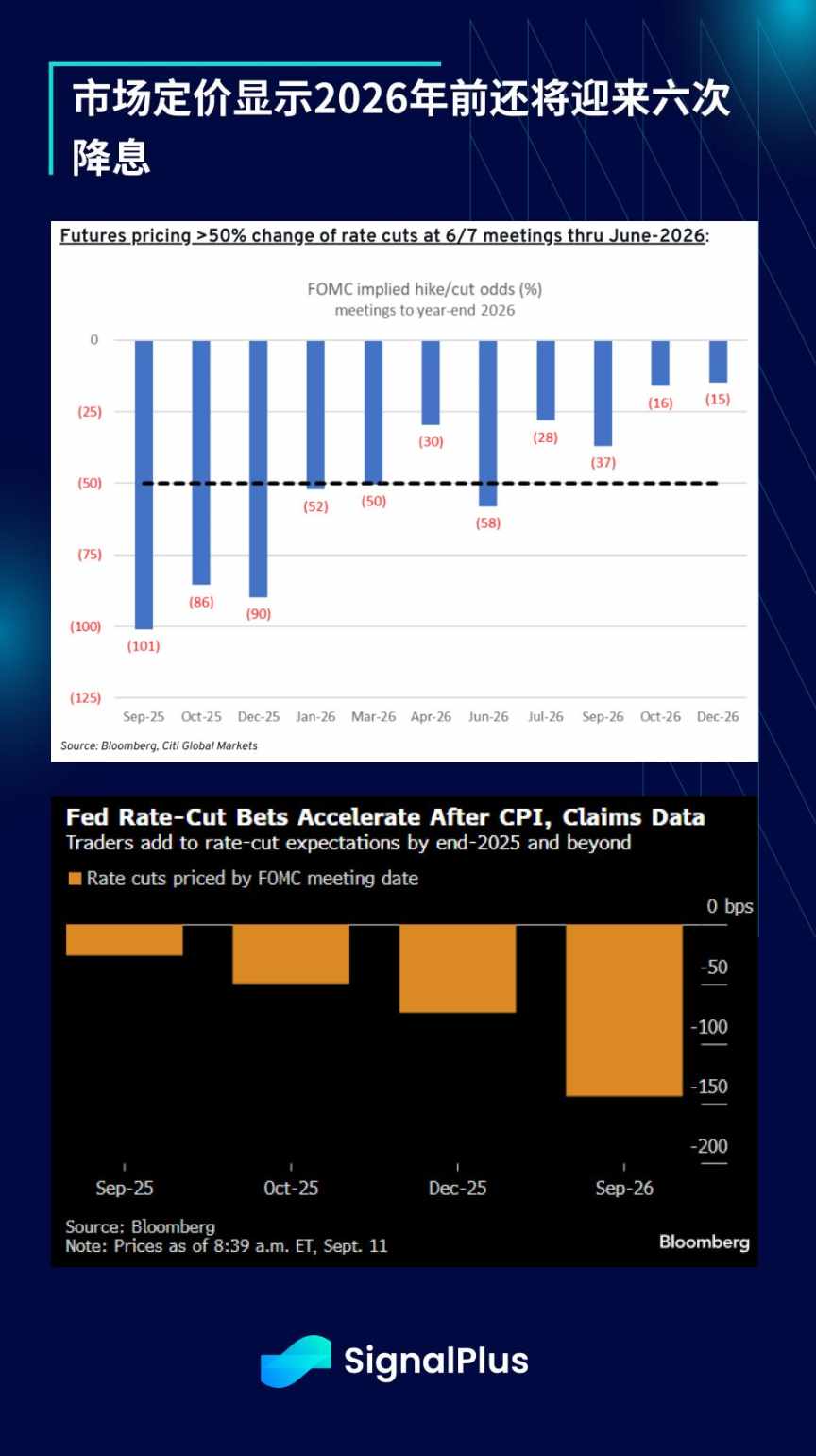 展望后市,焦点将转向 FOMC 会议。但由于市场普遍预期美联储在杰克逊霍尔会议后将持续支援风险情绪,交易员预计会议难现意外。花旗资料显示股权期权隐含会议日波动幅度约 72 基点,低于 84 基点的历史均值。市场可能需要从其他领域寻找鹰派意外。