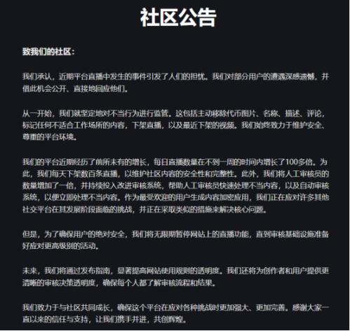 从效果而言,在直播刚刚上线时,并未如预想般给 Pump.Fun 带来水花,但在去年 11 月官方大力推广后,突然掀起了一波直播热潮,在当年的 11 月份,网站的每日收入几乎翻了五倍,达到 500 万美元。但可怕的是,Pump.Fun 的直播内容审核机制完全缺失,而为追求流量与注意力,直播间的内容愈发出格,不惜作出各式极端行为,直播虐待动物、凶杀、自杀乱象频出,一度使直播间成为了群魔乱舞的代名词,堪称黄暴游乐场。在此背景下,2024 年 11 月 26 日,Pump.fun 宣布禁用直播功能,协议收入也迅速下降 33% 至 360 万美元。
