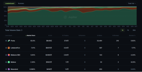 竞争对手虎视眈眈,以 BONK 为主体的 letsbonk.fun 追赶明显,其间一度以代币发射多次力压 Pump.fun,赛道竞争激烈。