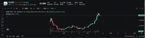 从回购数据来看,截至 9 月 17 日,自 7 月 15 日开始回购 PUMP 以来,已累计回购价值约 1.008 亿美元 PUMP 代币,已使总流通供应量减少 6.794%。从 9 月 3 日开始,PUMP 价格迅速走高,从 0.004 美元最高飙升至.0089 美元,现回落至 0.0079 美元,相比上线时的高点再度上涨 16.17%。