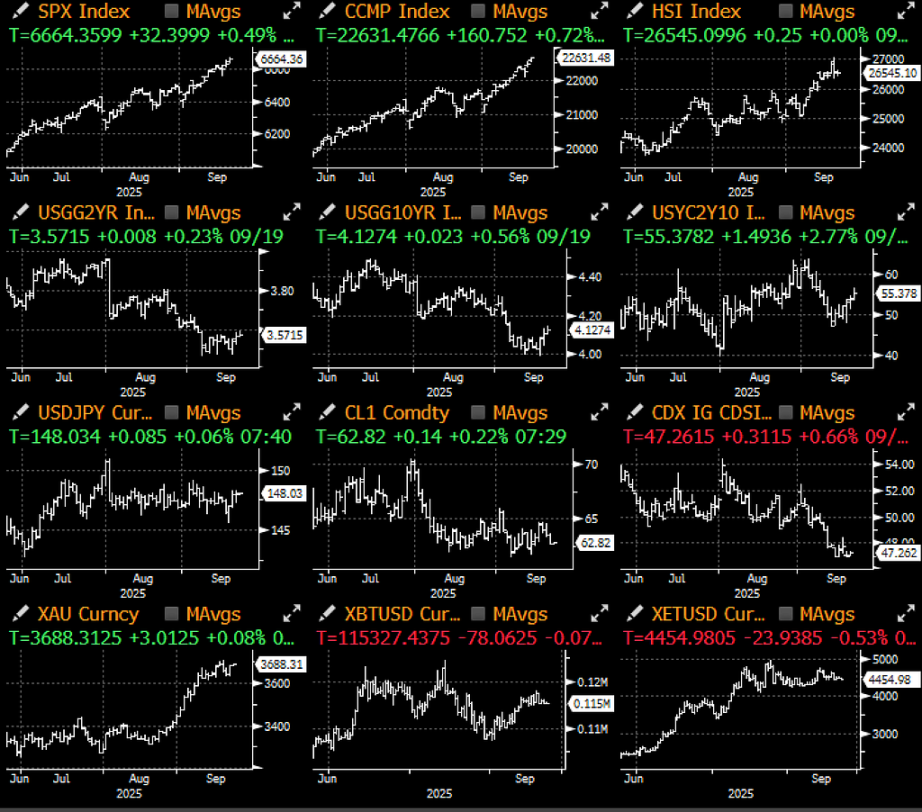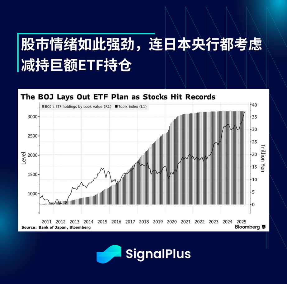 地缘政治方面,中美关系出现显著改善迹象:TikTok 初步协议达成,特朗普与习近平通话确认贸易谈判持续进展。两国领导人还承诺在下月韩国 APEC 峰会期间举行面对面会晤,这将是自 2019 年 G20 峰会以来首次首脑会晤。这些进展提振了风险情绪,尤其新兴市场股票表现强劲,甚至日本央行发出信号计划(逐步)减持 ETF 持仓,同期东证股价指数创历史新高。