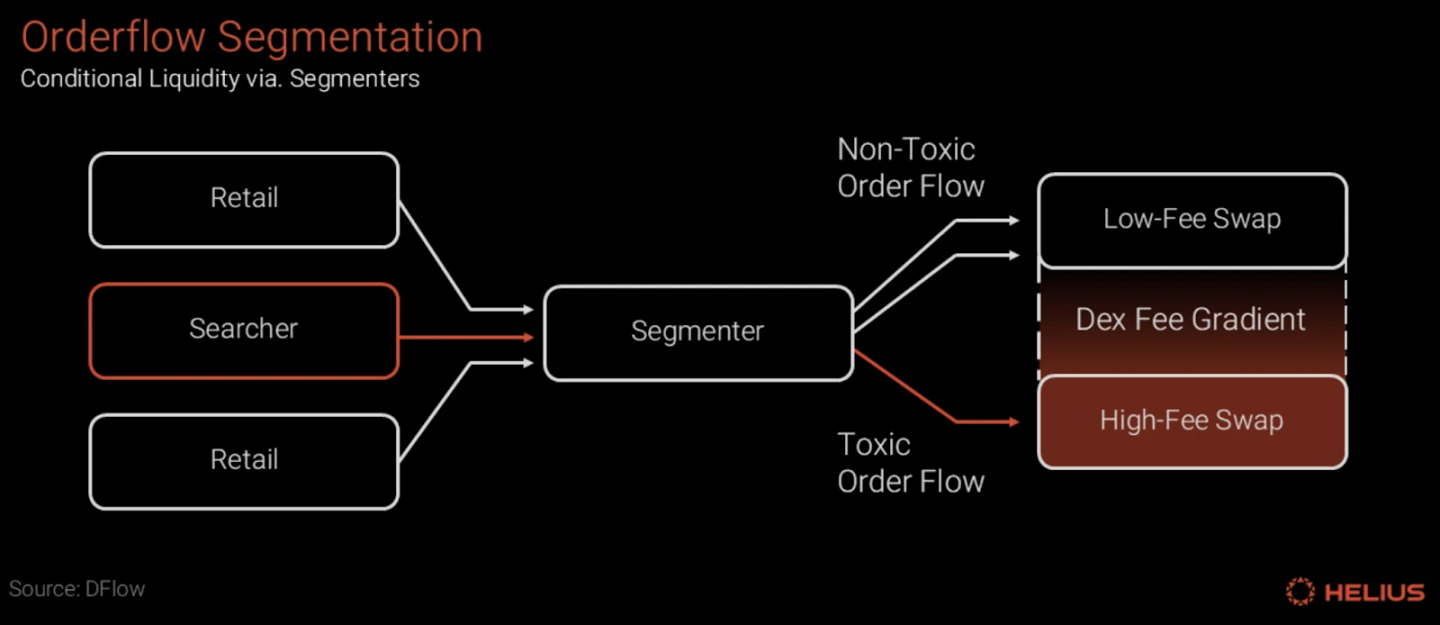 正是为了解决这一困境,「条件流动性」(Conditional Liquidity,CL)应运而生。这一由 DEX 聚合器 DFlow 率先提出的新模式,旨在将流动性从一个被动的「静态水池」改造为一个主动的「智能守门人」。其核心思想十分清晰:流动性的供给不再是无条件的,而是能够根据订单流的「毒性」等实时数据进行智能判断,并随之调整自身报价。 这种基于规则的动态响应,其根本目标在于改写不公平的交易现状,为普通用户和 LP 提供切实的保护。