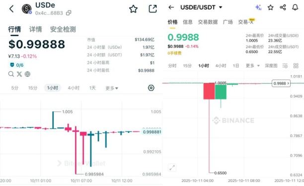 10/11 11:50 爆仓后我闷闷地刷着推特,推上许多老师在讨论 CEX 离谱的天地针与 USDe 脱锚,出于好奇我对比了下 CEX 与链上:CEX 插针极深,很多人想抄底却因为宕机买不进去;而链上的价格波动没那么夸张,交易也能相对顺利完成。