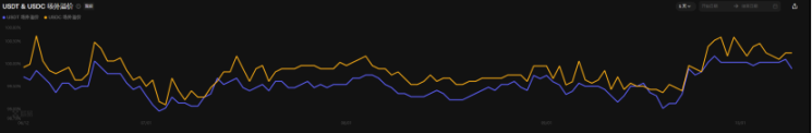 近期(9/27-10/9)USDT 和 USDC 的场外溢价率在 9 月 28 日左右冲高后转入高位震荡。该时间点恰与大盘启动上涨同步。这表明场外资金更倾向于在市场回调时抄底,而非在突破新高后追涨。目前溢价率并未回落,仅处于高位震荡,反映出本轮上涨虽带动了市场情绪,但尚未引发全面的 FOMO(错失恐惧症)情绪。
