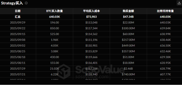 近期(9/27-10/9),微策略(MicroStrategy)于 9 月 29 日再次以 2200 万美元资金,均价 113,048 美元购入了 196 枚比特币。尽管此次购入量较小,但微策略在 9 月份的增持频率明显高于 7、8 月份,对市场信心起到了一定的提振作用。
