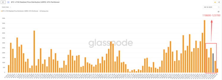 在比特币成功突破历史新高后,当前在 118,600 至 123,700 美元区间内形成了均匀的筹码换手区。主要的筹码峰已从 116,900 美元附近上移至 117,400 美元。在 118,600 至 123,700 美元区间未形成单一超高筹码峰之前,可以认为当前的换手相对健康。若后市在此区域形成超高筹码峰,则需警惕短期见顶风险。