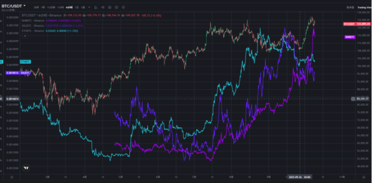 主流币种汇率对(SOL/BTC, ETH/BTC, BNB/BTC)